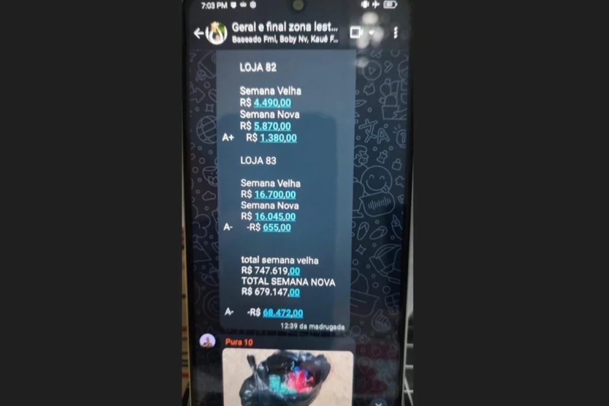As imagens mostram a movimentação financeira das bocas de fumo, chamadas de “lojas” pelos traficantes. Uma delas, no extremo leste de São Paulo, teria vendido mais de R$ 188 mil em drogas em uma semana. A maior parte da publicação, contudo, indica transações de menor valor – com vendas semanais entre R$ 500 e R$ 20 mil.